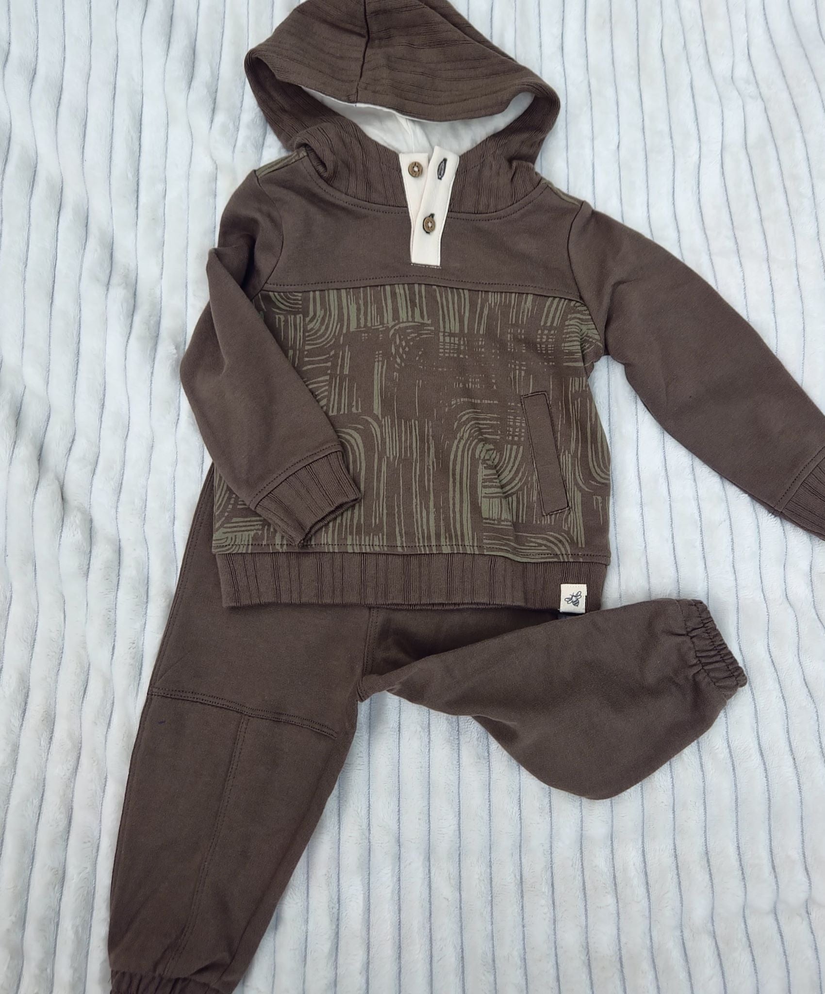 Your little one will be comfy and cute in this soft sweatshirt and pants set from Burt’s Bees Baby. Featuring a hand-painted abstract waterfall print, this outfit blends everyday comfort with a touch of artistic charm. The lined hood adds extra warmth and style, while functional snaps at the neckline make dressing a breeze. Made from 100% organic cotton, it’s gentle on delicate skin and perfect for all-day wear.