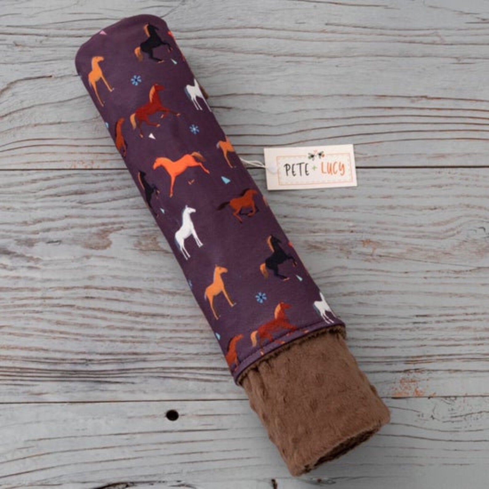 Soft, cozy, and oh-so-sweet—this minky blanket from Pete + Lucy is perfect for snuggles with your little one. Featuring a charming horse-themed print, it brings a touch of whimsy to nap time, stroller rides, or cozy nights in. The silky-smooth minky fabric is gentle on delicate skin while keeping your child warm and comfortable. A wonderful everyday essential or thoughtful gift!