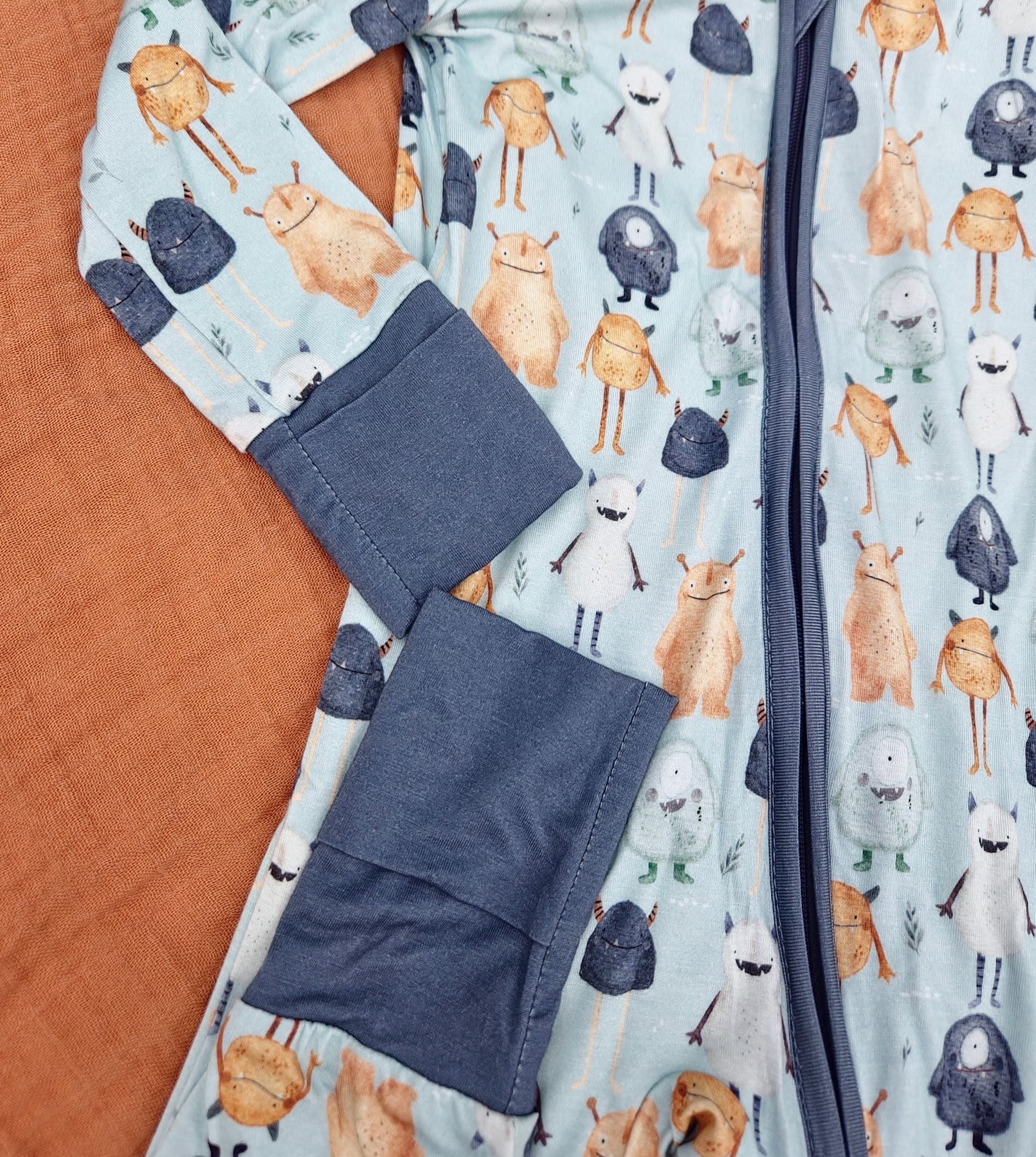 Keep bedtime fun and cozy with the Snuggle Spooks Bamboo Sleeper! Made from ultra-soft bamboo fabric, this sleeper is gentle on delicate skin while keeping your little one warm all night long. The fold-over cuffs on hands and feet let you cover tiny fingers and toes for extra warmth or flip them back when little hands and feet need freedom. A double zipper makes diaper changes quick and hassle-free.