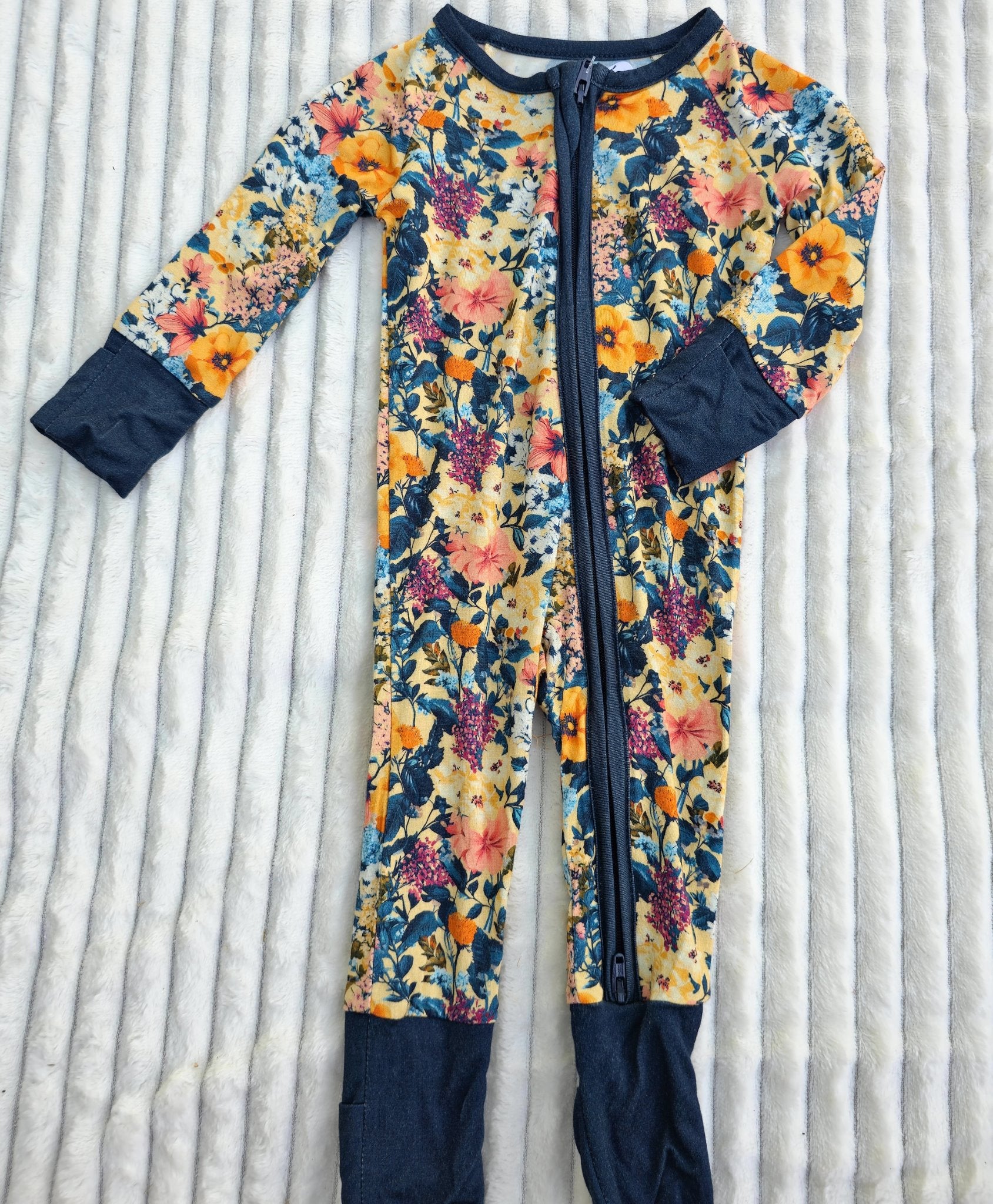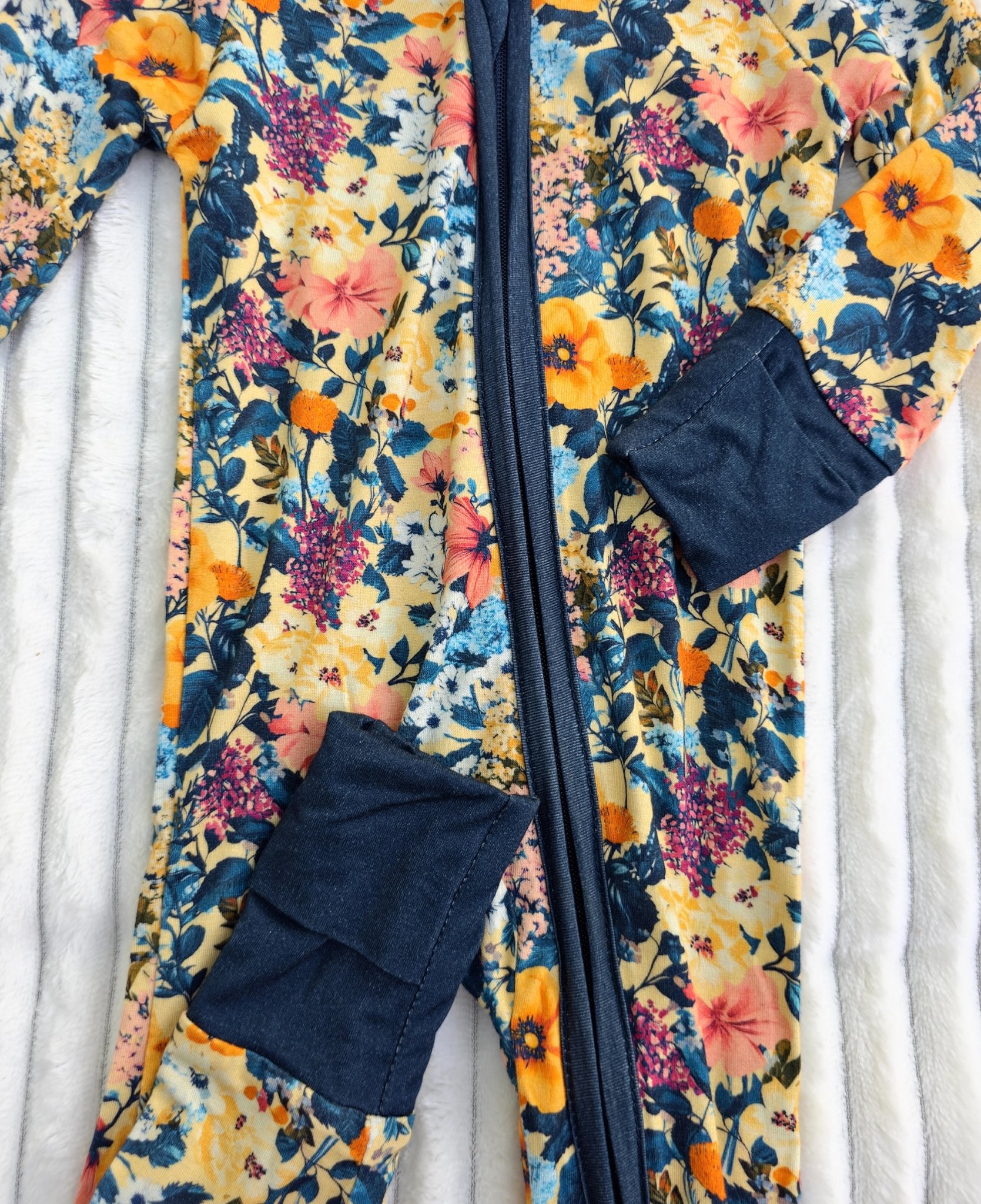 Bloom into bedtime with our Wildflower Bamboo Sleeper. Made from buttery-soft bamboo, this pajama is lightweight, breathable, and stretchy—perfect for keeping your little one comfy through naps, play, and sweet dreams. Designed with fold-over mittens (up to 12–18M), convertible footies, and a two-way zipper, it’s as practical as it is adorable. The snug fit ensures safety while the dreamy wildflower print brings a touch of whimsy to every moment.