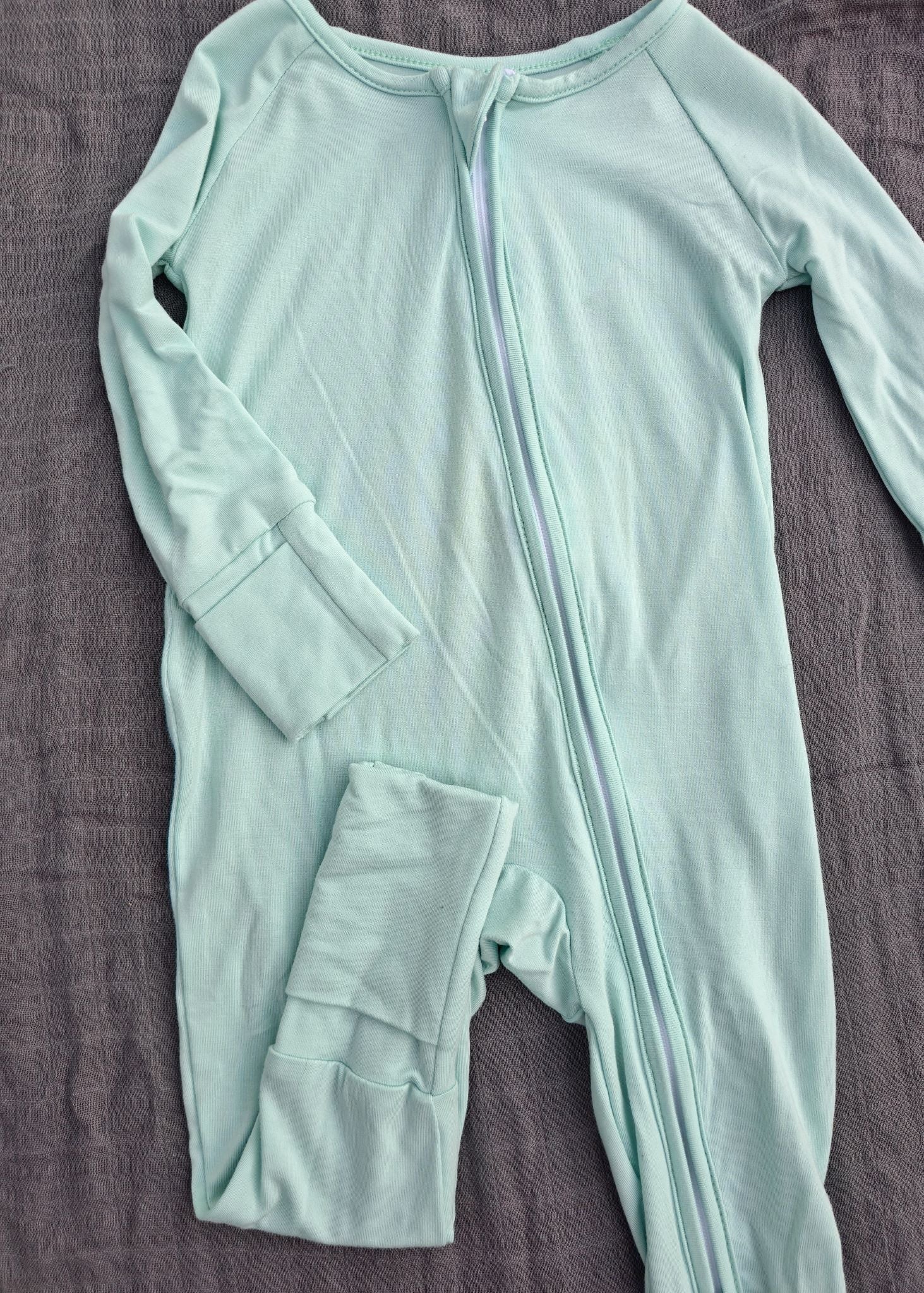 Cool, calm, and oh-so-cozy—these solid Arctic Blue pajamas are the perfect blend of comfort and versatility. Crafted from a buttery-soft bamboo blend, they’re breathable, stretchy, and gentle on sensitive skin. A double zipper makes changes effortless, while the flip-over cuffs on both hands and feet let you transition from playtime to bedtime with ease. Designed with a chin guard and tag-free finish, they’re made to keep your little one comfy all day (and night) long.